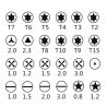 Met de meegeleverde schroevendraaierkoppen kun je op verschillende soorten schroeven werken, zodat je compatibel bent met een grote verscheidenheid aan apparaten. Je vindt 6-punts torxschroefkoppen variërend van T2 tot T15, sleufkopschroeven in de maten 1,0 mm, 2,0 mm en 3,0 mm, en Phillips-schroeven in de maten Ph00 tot PH2. De kit bevat ook een 2,0 mm Y-schroefkop, een 2,3 mm driehoekschroefkop, 5-punts torxschroeven in de maten 1,8 mm en 1,2 mm en een 1,0 mm pendraaier voor precisiewerk aan horloges.
