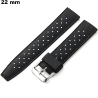 Este item é feito de silicone e representa um compromisso ideal para a troca de uma pulseira de relógio defeituosa ou danificada. Um sistema de fixação seguro e prático é garantido utilizando o fecho de cor preta ardillon. Para ser unido a um estojo, a pulseira de 22mm se conecta através de hastes de relógio de 22 mm. A alça direita está localizada na extremidade da pulseira do relógio.